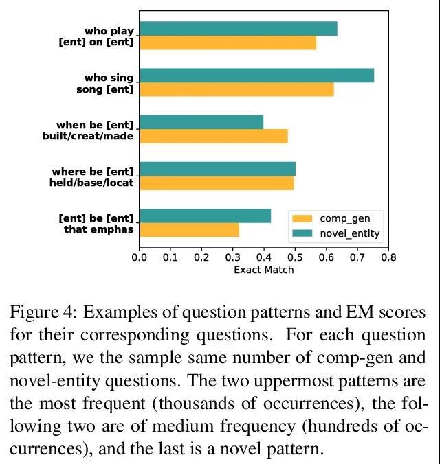 开放域问答的泛化挑战。最近关于开放域问答的工作表明,在新的测试问题和那些与训练问题基本重合的问题之间,模型性能存在很大差异。然而,到目前为止,还不清楚是哪些方面的新问题使其具有挑战性。借鉴关于系统泛化的研究,本文根据衡量不同水平和种类泛化的三个类别来提出和解释问题:训练集重叠、成分泛化(compgen)和新实体泛化(novelentity)。在评估六种流行的参数和非参数模型时,发现对已经建立的自然问题和TriviaQA数据集,即使是最强的模型在comp-gen/novel-entity方面的表现也比全部测试集的表现低13.1/5.4%和9.6/1.5%——表明这些类型的问题带来了挑战。虽然非参数模型可以处理包含新实体的问题,但它们在处理那些需要组合泛化的问题时却很困难。通过彻底分析,发现关键的问题难度因素是:来自检索组件的连带错误、问题模式的频率和实体的频率。