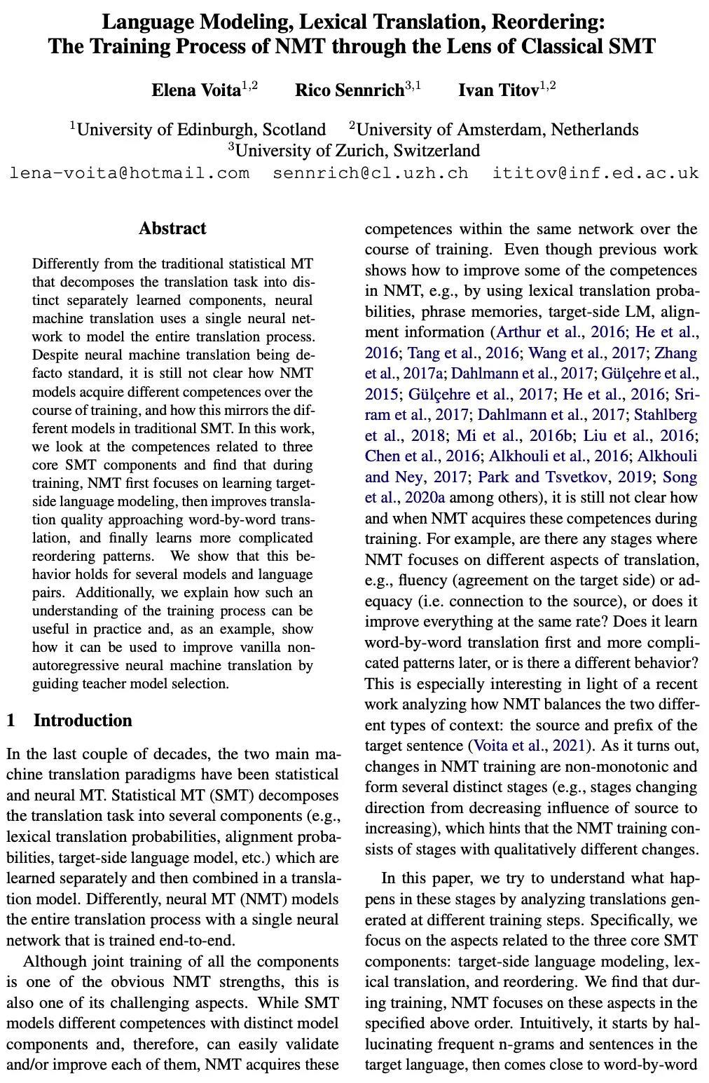 3、[CL] Language Modeling, Lexical Translation, Reordering: The Training Process of NMT through the Lens of Classical SMT