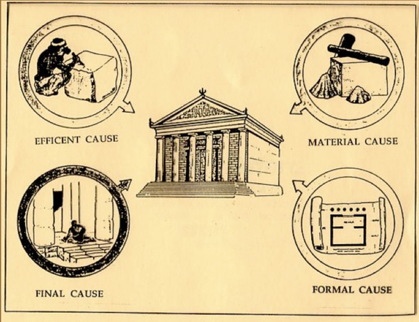 目的因:即事物所追求的目的,例如“为了安置人和财产”就是房子的目的因。