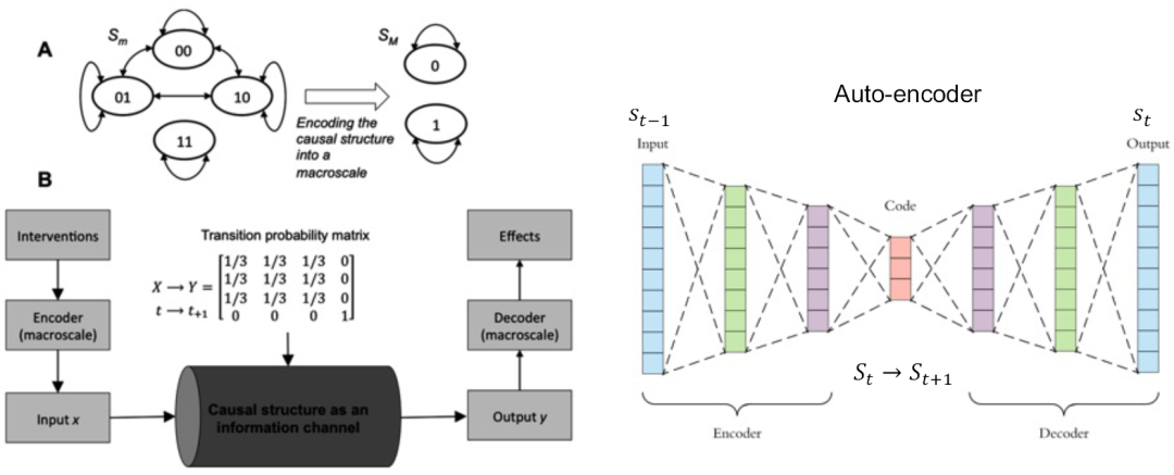 从另一个角度看,机器学习学术社区已经在因果涌现框架下进行了丰富的尝试,比如很早就出现的自编码(auto-encoder)框架,就是对因果涌现的另外一套表述。