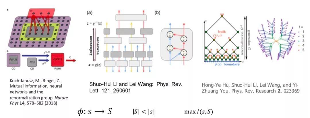 这些文章指出,通过一系列规则,如使微观态与宏观态的互信息最大化,利用可逆神经网络等,通过机器学习的训练,可以得到高保真且恒等的映射。至此,虽然我们无法保证映射的唯一性,但起码粗粒化的操作有了极大的约束,从而避免出现无意义的操作。不过目前,上述两个领域并没有很好的结合。