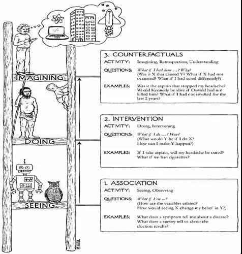 让我们首先从 Judea pearl 的因果之梯说起。在因果科学中,有两个最关键的概念,即反事实和干预。通过这两个关键概念,我们得以判断究竟是否存在因果关系,从而破除迷惑大量哲学家和数学家的浓雾。进一步地,我们最新的因果涌现读书会与其存在一个非常有趣的对话点,即在复杂系统里,存在多个层级和多种尺度,这不仅可能表现为不同层级和尺度下存在不同的因果关系,甚至有可能存在跨层级的因果联系。